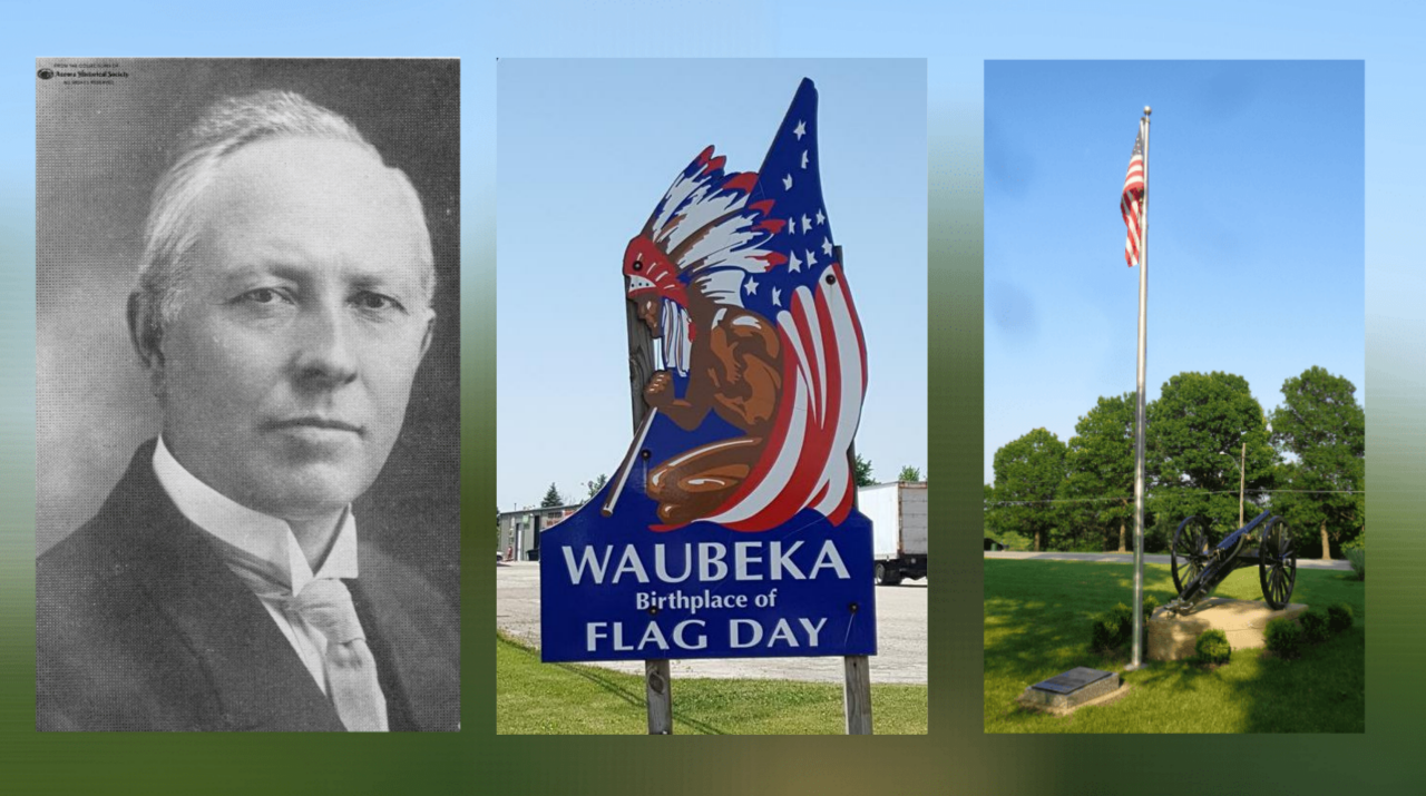 Bernard J. Cigrand became a public-school teacher at Stony Hill School in Waubeka. He held his first observance of US Flag Day with his students on June 14, 1885. He chose that day because on June 14, 1777, the United States Congress officially adopted the stars and stripes as the US flag. This celebration was the humble beginning of Cigrand’s passionate life-mission to have a “birthday celebration” instituted by the US government to celebrate the US Flag.