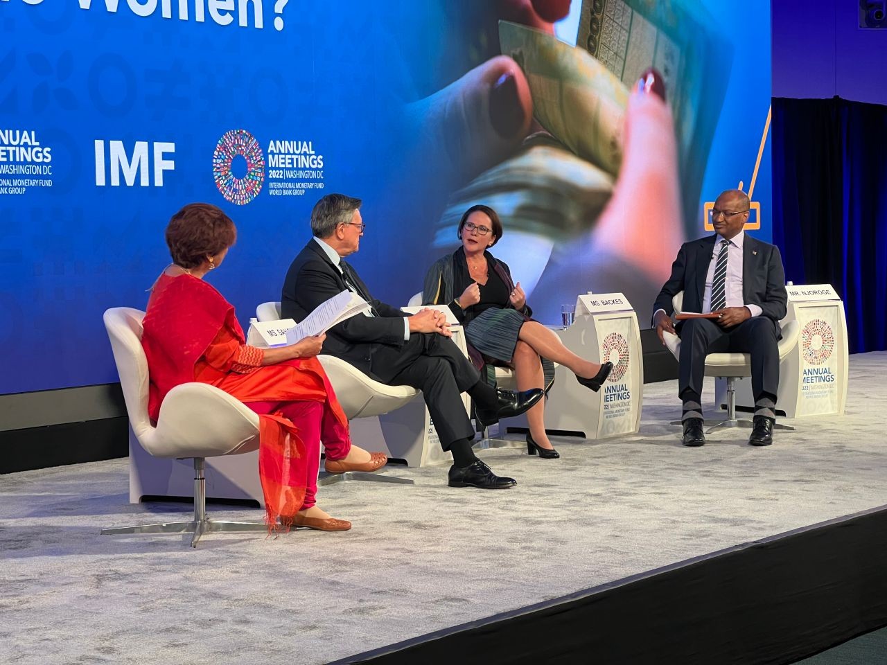 Finally, Minister Backes was part of a high-level IMF panel, moderated by Ratna Sahay, on the role of women in the financial sector, centered around the theme: “The World of Finance: Where are the Women?". Participants discussed ways to accelerate gender diversity in finance, reasons for existing gender gaps in companies and the incentives to put in place to encourage the presence of more women in decision-making roles. Minister Backes welcomed the IMF's recent decision to make gender diversity an integral part of its activities, stating: "The economic case for gender equality is undeniable: to achieve a sustainable economic recovery, we cannot afford to ignore half the world's population".